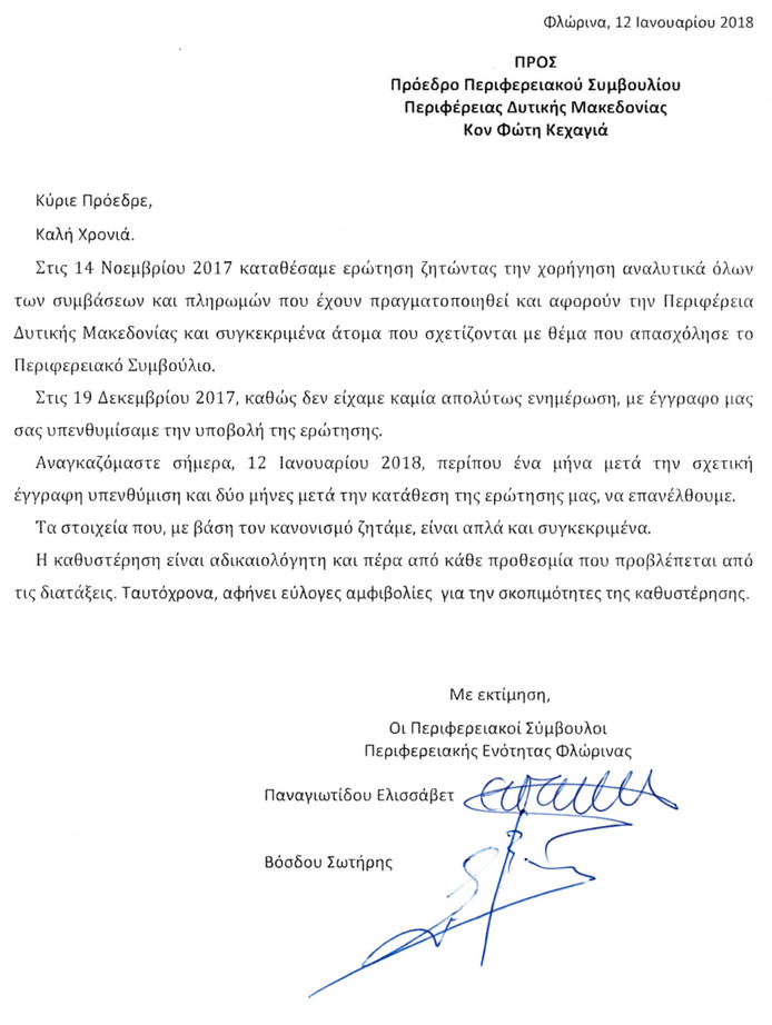 Αυτοδιοίκηση 12/01/2018 Επιστολή Παναγιωτίδου – Βόσδου στον Πρόεδρο του Π.Σ. Δυτικής Μακεδονίας για τις συμβάσεις πληρωμών της Περιφέρειας 0 Επιστολή Παναγιωτίδου – Βόσδου στον Πρόεδρο του Π.Σ. Δυτικής Μακεδονίας για τις συμβάσεις πληρωμών της Περιφέρειας