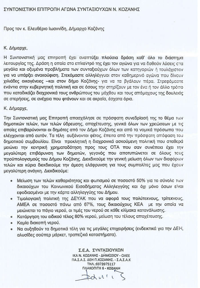 Κοζάνη 15/01/2018 Συνάντηση της Συντονιστικής Επιτροπής Αγώνα Συνταξιούχων Κοζάνης με τον Δήμαρχο Κοζάνης Λ. Ιωαννίδη 0 Σήμερα 15-01-2018 και ώρα 09,30 συναντήθηκε η ΣΥΝΤΟΝΙΣΤΙΚΗ ΕΠΙΤΡΟΠΗ ΑΓΩΝΑ ΚΟΖΑΝΗΣ με τον κ. Δήμαρχο Κοζάνης και συζήτησαν τα κάτωθι θέματα: