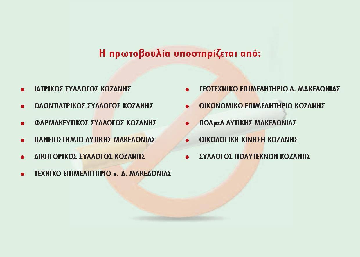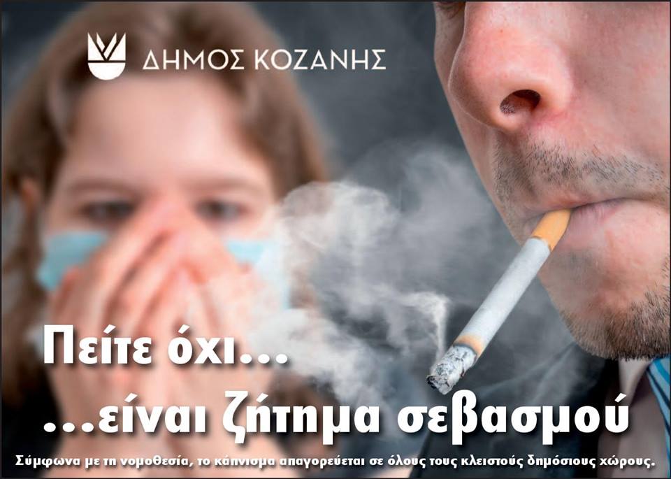 «Στο Δήμο Κοζάνης λέμε όχι στο κάπνισμα στους κλειστούς Δημόσιους Χώρους. Είναι θέμα σεβασμού!