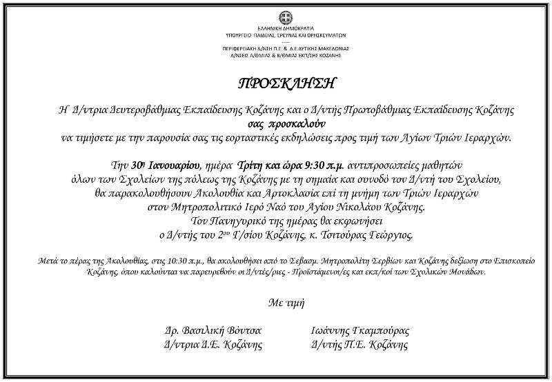 Οι εκδηλώσεις για τον εορτασμό των Τριών Ιεραρχών στην Κοζάνη