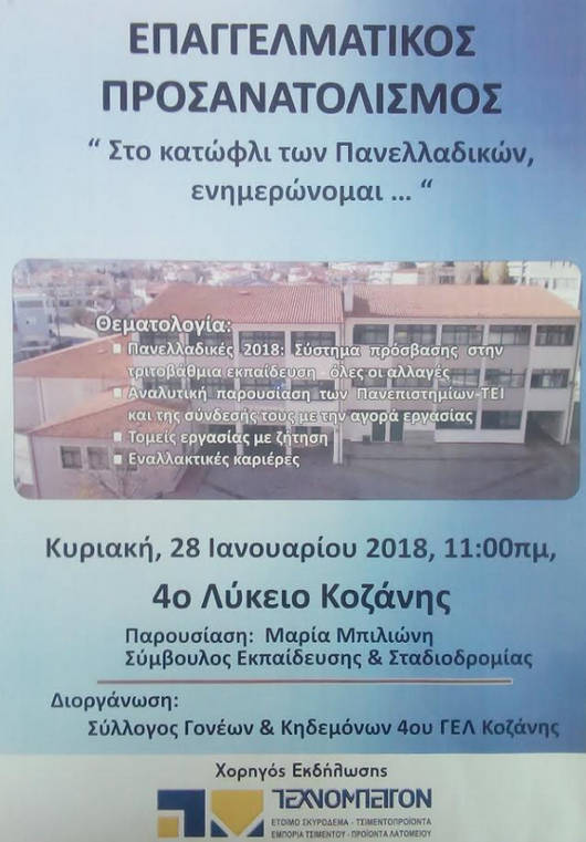 Εκδήλωση Επαγγελματικού Προσανατολισμού από το 4ο ΓΕΛ Κοζάνης