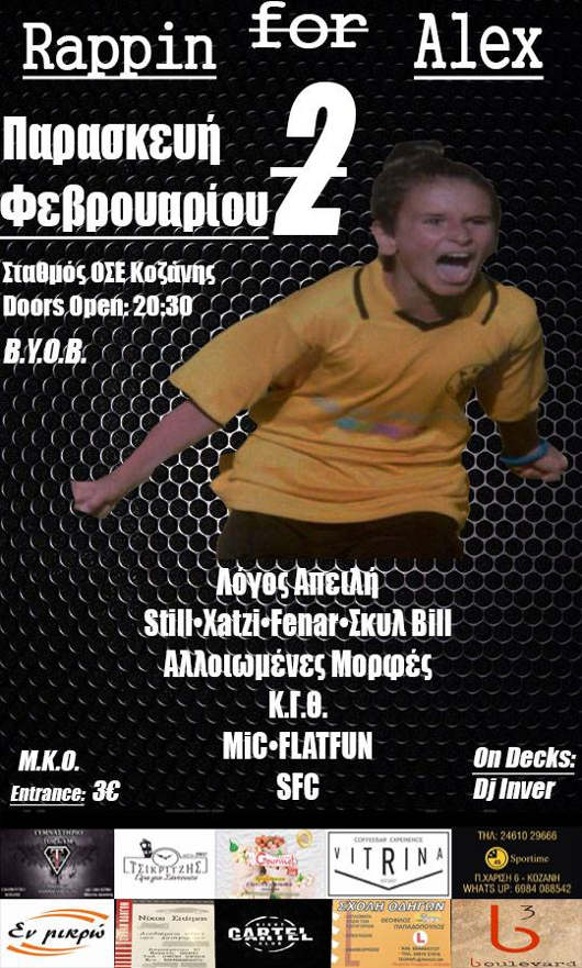 Hip Hop βραδιά με τη συμμετοχή πολλών καλλιτεχνών στην Κοζάνη για τον Αλέξανδρο Μελισσινό