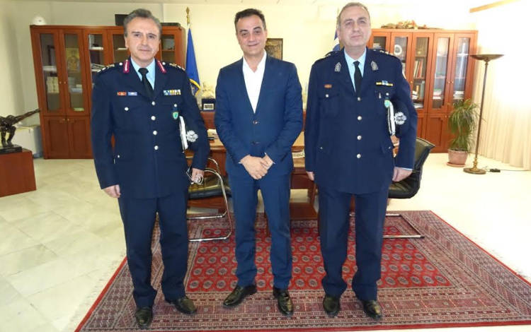 Κατά τη διάρκεια της εθιμοτυπικής συνάντησης ο Περιφερειάρχης συνεχάρη τον κ. Μαντζούκα και τον κ. Αμαραντίδη για την ανάληψη των νέων τους καθηκόντων, ευχήθηκε καλή δύναμη και καλή επιτυχία, υπογραμμίζοντας την άψογη συνεργασία που υπάρχει μεταξύ περιφέρειας και αστυνομίας και βεβαιώνοντας ότι η αγαστή αυτή συνεργασία θα συνεχιστεί.