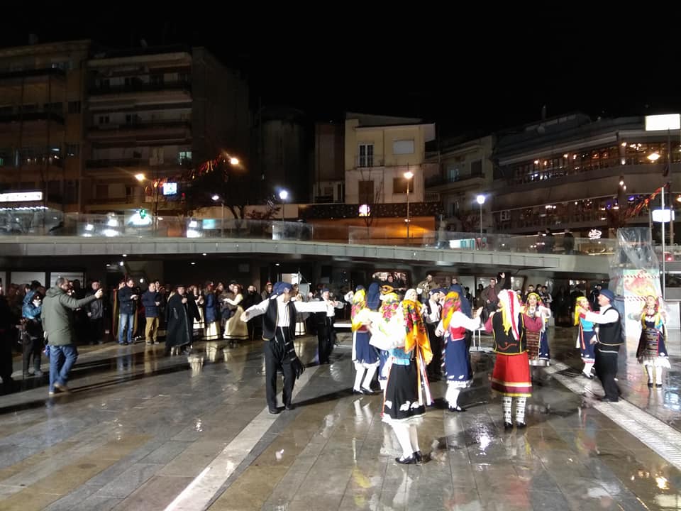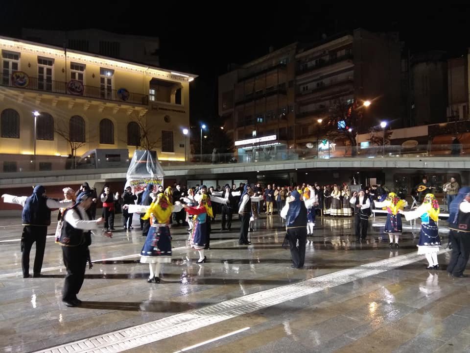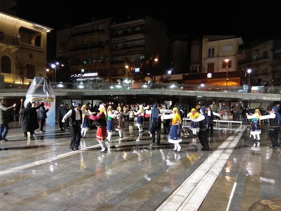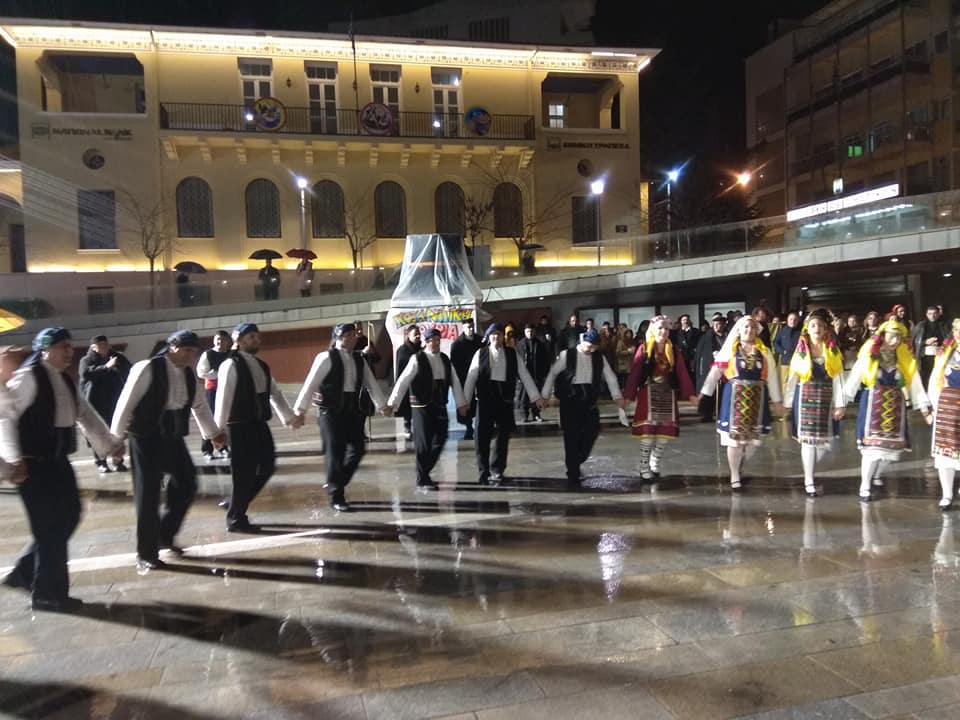 Η βροχή δεν πτόησε τα μέλη του Πολιτιστικού Συλλόγου «Φιλοτέχνες» από την Κομοτηνή, οι οποίοι φιλοξενούνται από τον Φανό Πλατάνια για τη συμμετοχή τους στην Κοζανίτικη Αποκριά, χορεύοντας το απόγευμα της Τρίτης 13 Φεβρουαρίου 2018 στην κεντρική πλατεία Κοζάνης.