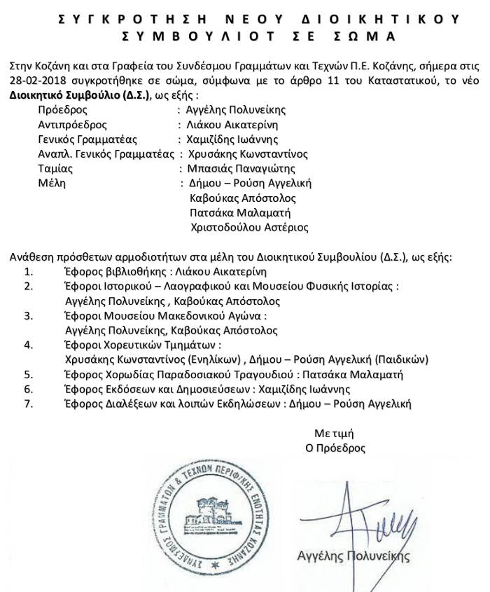 Κοζάνη 28/02/2018 Συγκροτήθηκε σε σώμα το νέο Δ.Σ. του Συνδέσμου Γραμμάτων και Τεχνών Κοζάνης 0 Συγκροτήθηκε σε σώμα το νέο Δ.Σ. του Συνδέσμου Γραμμάτων και Τεχνών Κοζάνης