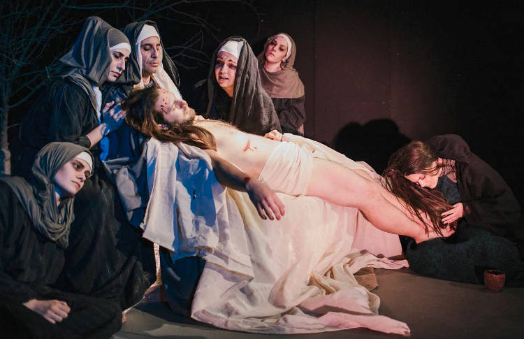 Ωστόσο η σύμπραξη του ΘΕΑΤΡΟΔΡΟΜΙΟΥ ΚΟΖΑΝΗΣ με τον Σύλλογο Ιεροψαλτών Κοζάνης «ΟΙ ΤΡΕΙΣ ΙΕΡΑΡΧΑΙ», δημιουργεί ένα Ορατόριο, στο οποίο, οι πρωταγωνιστές της τραγωδίας, συνομιλούν με του ιεροψάλτες και ο διάλογος αυτός του τραγικού λόγου με τους ύμνους της Μεγάλης Εβδομάδας, συνθέτει μια μυσταγωγική παράσταση, μέσα από την οποία παρακολουθούμε την μετάβαση, από το προπατορικό αμάρτημα στη μετάνοια, από την προδοσία στη θυσία και από το Θείο Πάθος στη κάθαρση και τη λύτρωση.