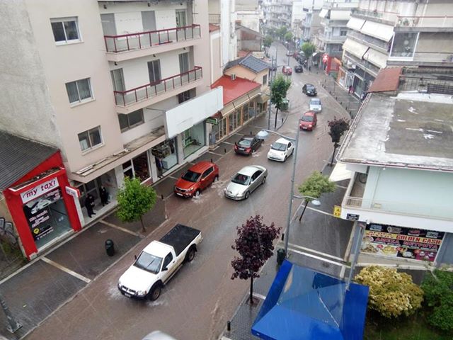 με μια πολύ σύντομη καταιγίδα, ποτάμι η κεντρικότερη οδός της Κοζάνης!