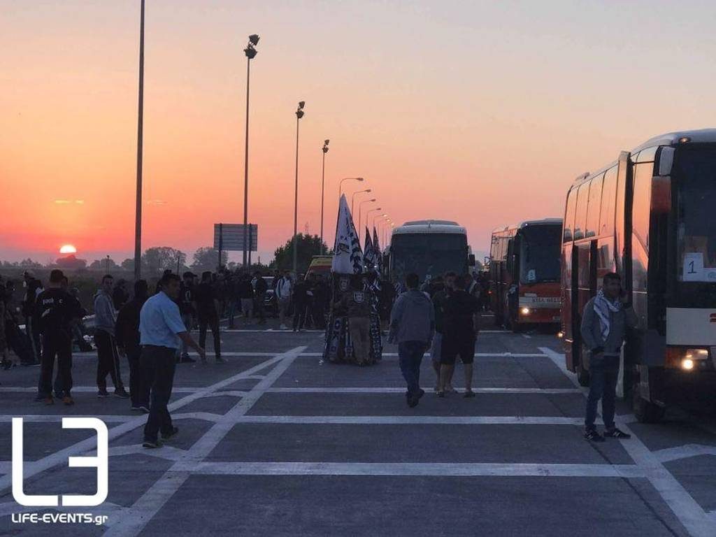 Από τις 06:00 το πρωί λεωφορεία με φιλάθλους του ΠΑΟΚ από τη Βόρεια Ελλάδα συγκεντρώνονταν στα Μάλγαρα για να αρχίσει η κάθοδος για την Αθήνα ενόψει του τελικού Κυπέλλου με την ΑΕΚ.