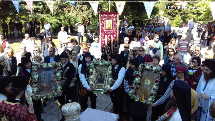 Η εικόνα της Παναγίας Σουμελάς, η εικόνα του Τιμίου Προδρόμου Προφήτου και Βαπτιστού του Χριστού Αγίου Ιωάννη Βαζελώνος και η εικόνα του Μεγαλομάρτυρος και Τροπαιοφόρου Αγίου Γεωργίου Περιστερεώτα που διασώθηκαν κατά τον ξεριζωμό των προγόνων μας, μετά την Γενοκτονία και την καταστροφική μανία που διέπραξαν οι Τούρκοι, ανταμώθηκαν μαζί για πρώτη φορά στην Ιστορία σε ένα Προσκύνημα.
