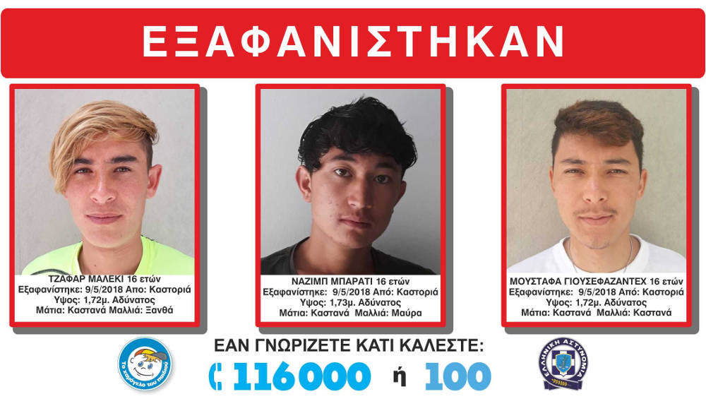 Στις 9/5/2018, κατά τις μεσημεριανές ώρες, εξαφανίστηκαν από την Καστοριά, οι Ναζίμπ(ον.) Μπαρατί(επ.), Τζαφάρ(ον.) Μαλεκί(επ.) & Μουσταφά(ον.) Γιουσεφαζαντέχ(επ.), 16 ετών και οι τρείς.