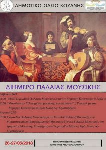 Το Δημοτικό Ωδείο Κοζάνης ολοκληρώνει τον σεμιναριακό κύκλο του σχολικού έτους 2017/18 με ένα Διήμερο Παλαιάς Μουσικής με τον Δημήτρη Κούντουρα.