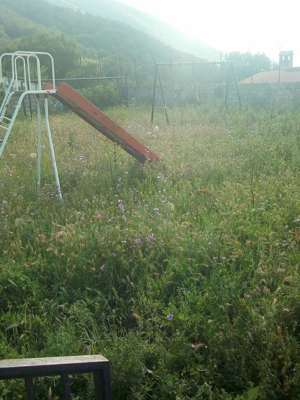 Οι φωτογραφίες είναι από τη μοναδική παιδική χαρά του χωριού, με τα χόρτα να έχουν καλύψει τα πάντα και να καθιστούν το παιχνίδι αδύνατο.