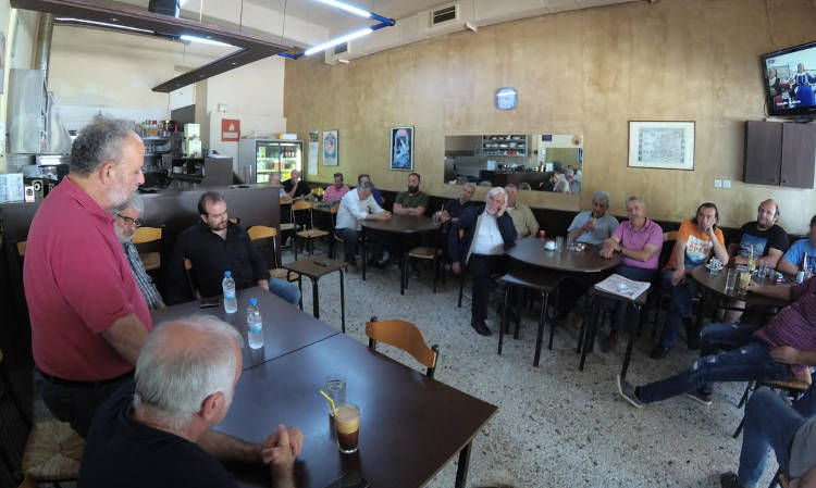 Στην συνέχεια επισκέφτηκε καφενείο της Νεάπολης Κοζάνης όπου μίλησε σε αγρότες και κτηνοτρόφους
