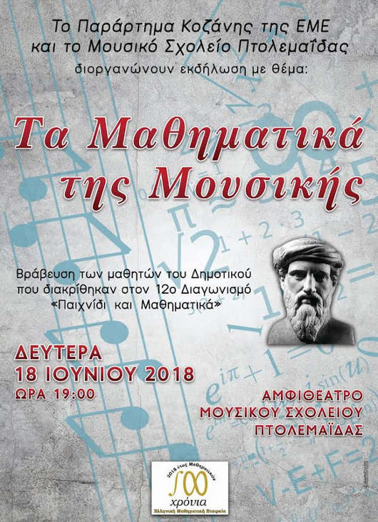 Η εκδήλωση θα πραγματοποιηθεί τη Δευτέρα 18 Ιουνίου 2018, ώρα 19:00 στο Αμφιθέατρο του Μουσικού Σχολείου Πτολεμαΐδας.
