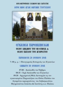 ΕΓΚΑΙΝΙΑ ΠΑΡΕΚΚΛΗΣΙΩΝ ΟΣΙΟΥ ΙΑΚΩΒΟΥ ΤΟΥ ΕΝ ΕΥΒΟΙΑ & ΟΣΙΟΥ ΠΑΪΣΙΟΥ ΤΟΥ ΑΓΙΟΡΕΙΤΟΥ