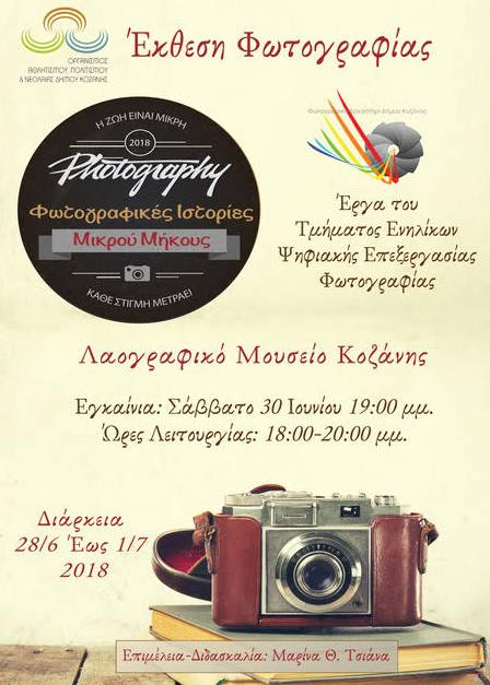 Τις μικρού μήκους ιστορίες τους θα παραθέσουν οι σπουδαστές του τμήματος ενηλίκων Ψηφιακής Επεξεργασίας Φωτογραφίας του Φωτογραφικού Εργαστηρίου του Δήμου Κοζάνης «Φωτοδίοδος» στο Λαογραφικό Μουσείο Κοζάνης.