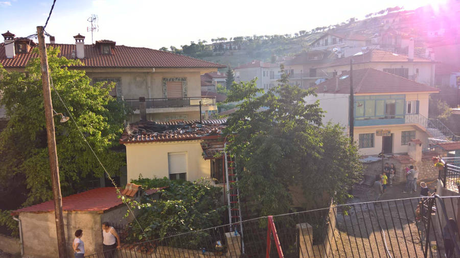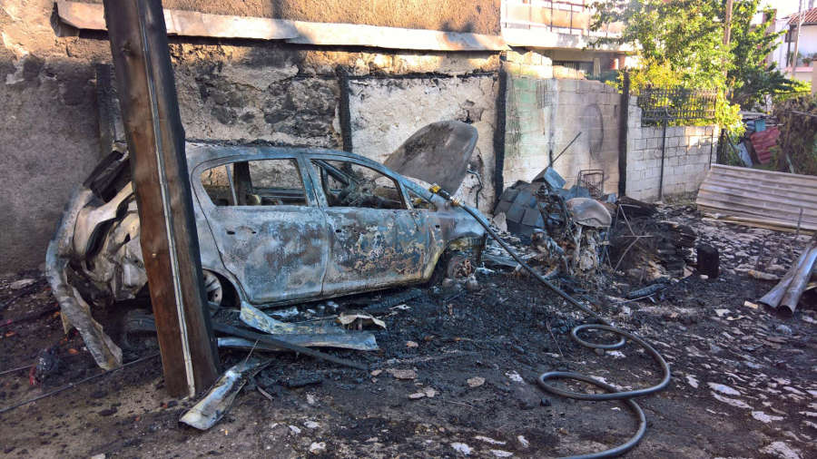 Χαρακτηριστικές είναι οι φωτογραφίες του Θεόδωρου Πεσνικά από το Ράδιο Σιάτιστα 95,7 που δείχνουν το μέγεθος της καταστροφής: Σοβαρές ζημιές στην διώροφη οικία και το γκαράζ, ένα καμένο αυτοκίνητο και μία καμένη μηχανή.