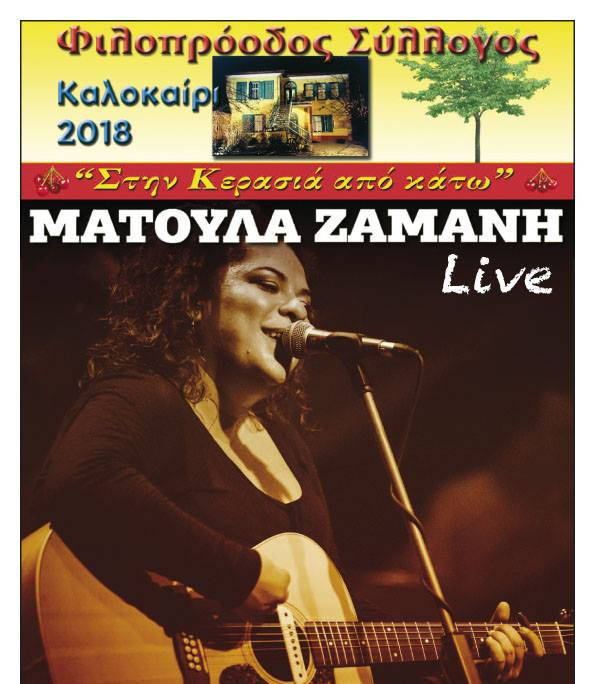 Απόψε στην αυλή του Φιλοπρόοδου Συλλόγου Κοζάνης η ζωντανή μουσική βραδιά με τη Ματούλα Ζαμάνη