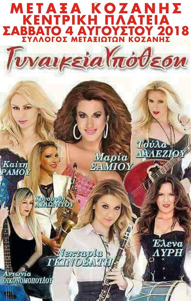 Σας καλούμε το Σάββατο 4 Αυγούστου 2018, να γλεντήσουμε στην κεντρική πλατεία του Μεταξά με τη «ΓΥΝΑΙΚΕΙΑ ΥΠΟΘΕΣΗ».