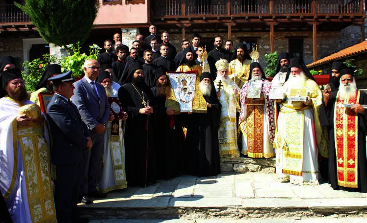 Λόγω της εφαρμογής του «άβατου» για τις γυναίκες (από 11.5.2015) στην κυρίως μονή στην κορυφή του επιβλητικού όρους Καλλίστρατου, οι ιερές ακολουθίες τελέστηκαν παράλληλα και στον Ι. Ναό (μετόχιο) του Αγίου Δημητρίου.