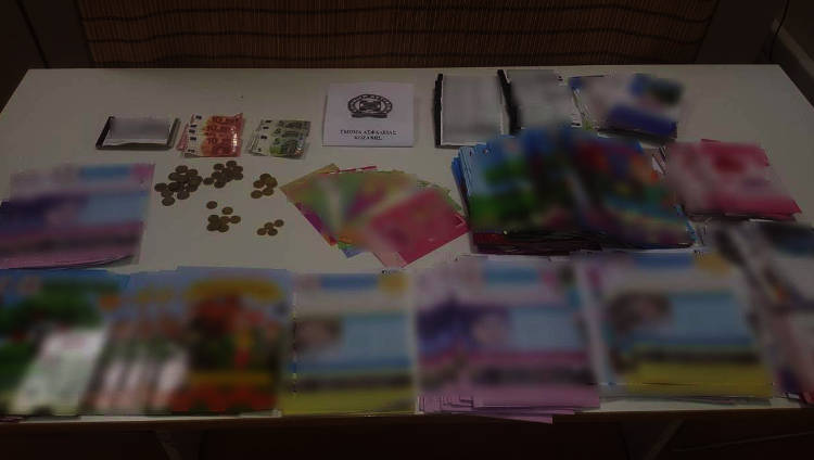 Κατασχέθηκαν το χρηματικό ποσό των -104,30- ευρώ, μπλοκ αποδείξεων, έντυπα υλικά και διάφορα άλλα έγγραφα.