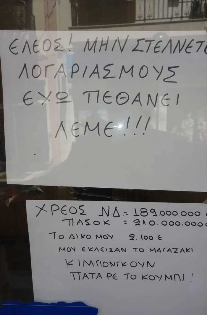 Δείτε το σημείωμα καταστηματάρχη στην Πτολεμαΐδα που αναγκάστηκε να κλείσει το μαγαζί του λόγω της κρίσης!