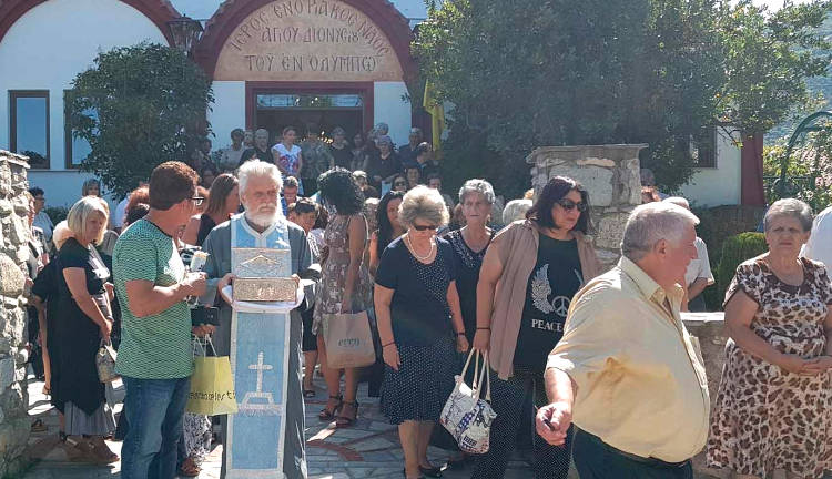 Μέσα σε κλίμα συγκίνησης το Βελβεντό πάνδημο κατευόδωσε (19-8-2018) μετά τη Θεία Λειτουργία στον Ιερό Ναό του Αγίου Διονυσίου Βελβεντού, το ιερό λείψανο του Αγίου Διονυσίου εν Ολύμπω για το Μοναστήρι του στον Όλυμπο.