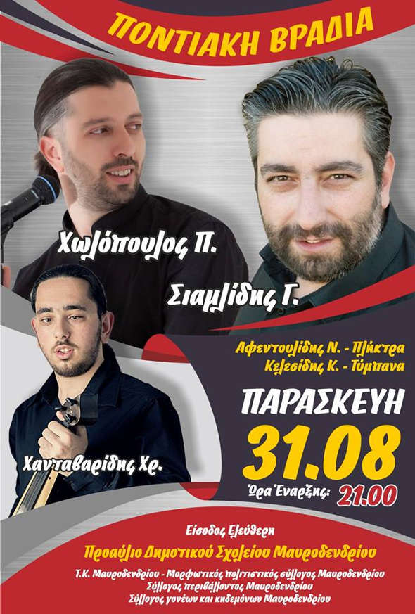 Κοζάνη 25/08/2018 Ποντιακή βραδιά την Παρασκευή 31 Αυγούστου στο Μαυροδένδρι Κοζάνης 0 Ποντιακή βραδιά την Παρασκευή 31 Αυγούστου στο Μαυροδένδρι Κοζάνης