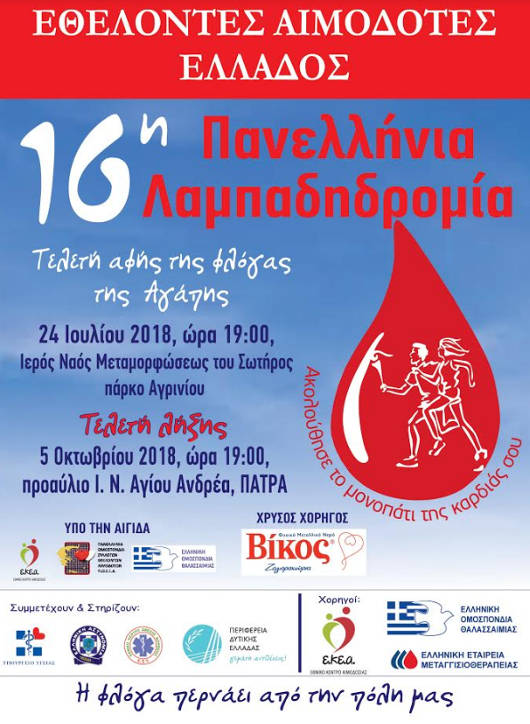Το πρόγραμμα της 16ης Πανελλήνιας λαμπαδηδρομίας 2018 για την περιοχή δράσης του συλλόγου μας.