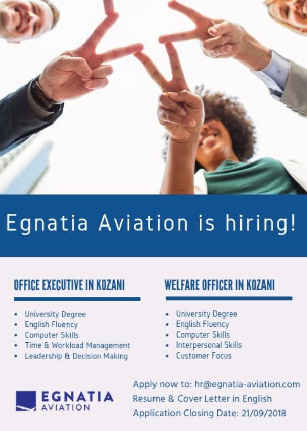 Κοζάνη 12/09/2018 Η Egnatia Aviation αναζητά προσωπικό στην Κοζάνη 4 Η Egnatia Aviation αναζητά προσωπικό στην Κοζάνη. Αιτήσεις μέχρι τις 21 Σεπτεμβρίου. Περισσότερες πληροφορίες στην παρακάτω αφίσα: