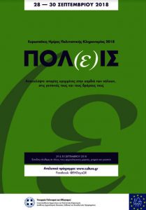 Στο πλαίσιο των Ευρωπαϊκών Ημερών Πολιτιστικής Κληρονομιάς 28-30 Σεπτεμβρίου 2018, η είσοδος στα δημόσια Μουσεία, μνημεία και αρχαιολογικούς χώρους είναι ελεύθερη σε όλους.