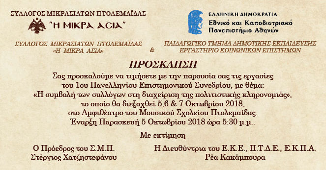 Το 1ο Πανελλήνιο Επιστημονικό Συνέδριο στην Πτολεμαΐδα με τίτλο: «Η συμβολή των Συλλόγων στη διαχείριση της Πολιτιστικής Κληρονομιάς».