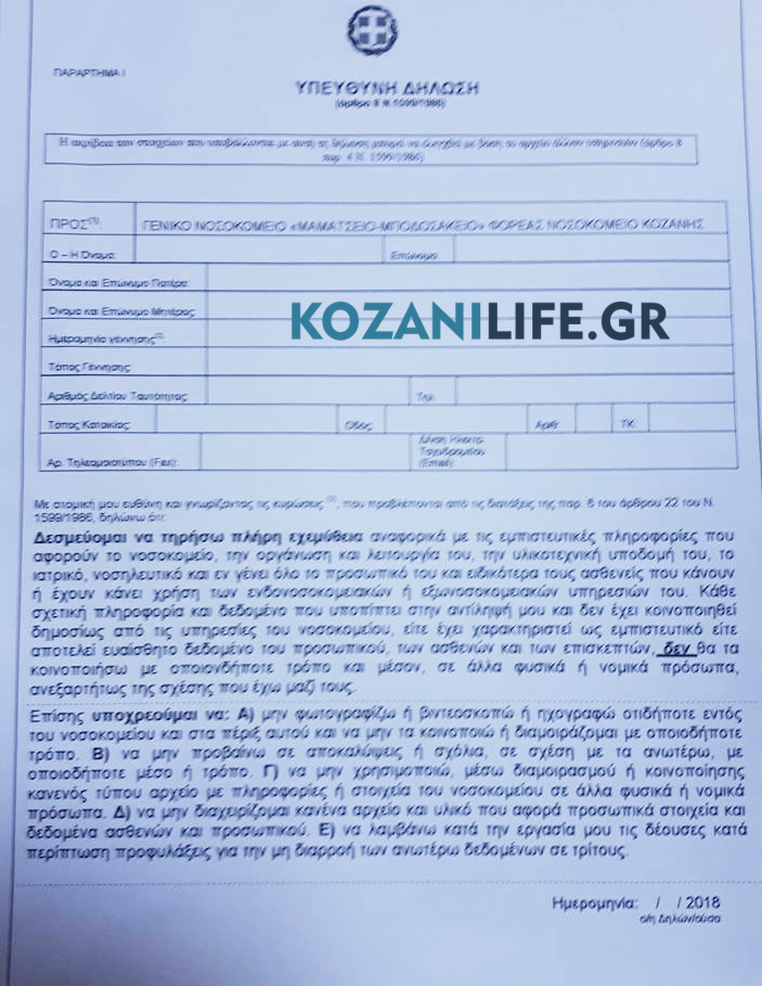 Αυτή είναι η επίμαχη υπεύθυνη δήλωση του Νοσοκομείου Κοζάνης – Πτολεμαΐδας που καταγγέλλει το ΠΑΜΕ – Τι λέει η διοίκηση του Νοσοκομείου