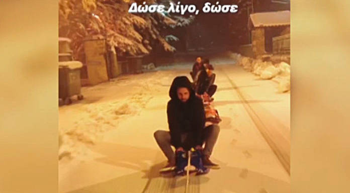 Το γλέντησαν για τα καλά νεαροί στην Βλάστη με τα πρώτα χιόνια