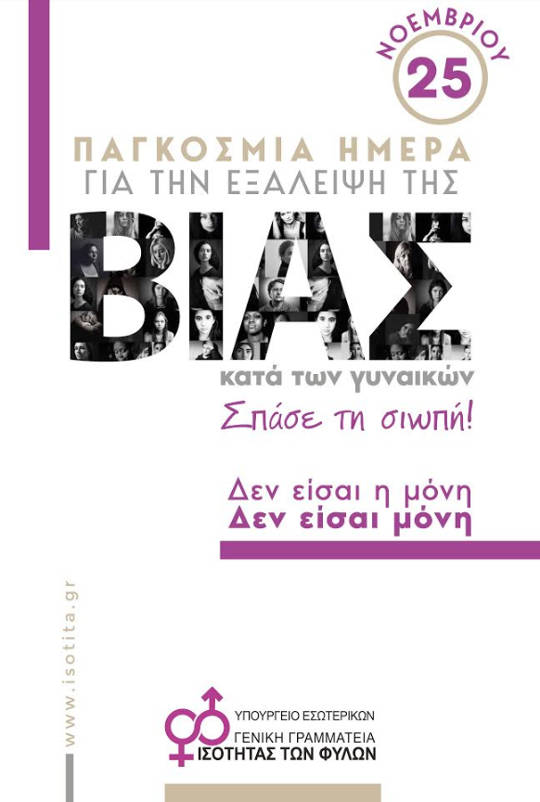 Τον Δεκέμβριο του 1991 η Γενική Συνέλευση του ΟΗΕ αποφάσισε να ανακηρύξει επίσημα την 25η Νοεμβρίου ως Παγκόσμια Ημέρα για την Εξάλειψη της Βίας κατά των γυναικών, με σκοπό να αναδειχτεί αυτό το σημαντικό κοινωνικό πρόβλημα. 17 χρόνια μετά έχουν γίνει σημαντικά βήματα στη χώρα μας, όπως η δημιουργία ενός υποστηρικτικού δικτύου 63 δομών για την πρόληψη και αντιμετώπιση της βίας κατά των γυναικών από τη Γενική Γραμματεία Ισότητας των Φύλων και η πρόσφατη κύρωση της «Σύμβασης του Συμβουλίου της Ευρώπης για την πρόληψη και καταπολέμηση της βίας κατά των γυναικών και της ενδοοικογενειακής βίας (Σύμβαση της Κωνσταντινούπολης)», η οποία τέθηκε σε ισχύ την 1η Οκτωβρίου 2018.