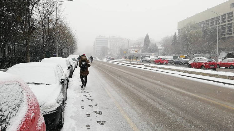 Πυκνές νιφάδες χιονιού πέφτουν στο κέντρο της Θεσσαλονίκης αλλά περιφερειακά της πόλης επιβεβαιώνοντας τις προβλέψεις των μετεωρολόγων.