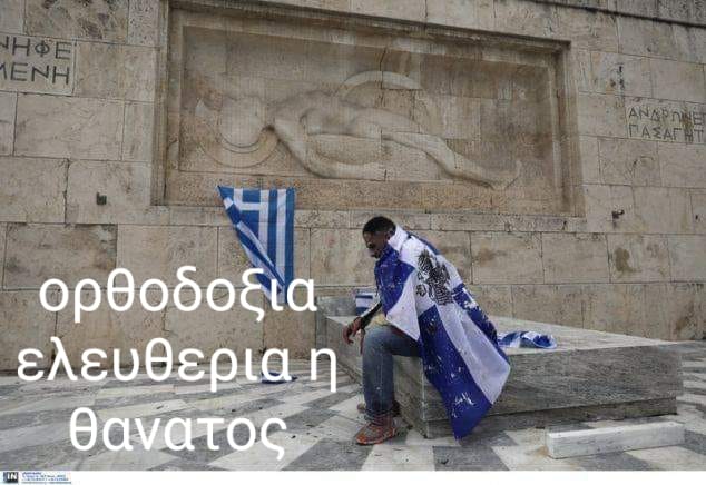 Ο ίδιος μάλιστα έκανε “εξώφυλλο” στη σελίδα του στο facebook την φωτογραφία που κάθεται πάνω στο Μνημείο του Αγνώστου Στρατιώτη, προσθέτοντας τη φράση “Ορθοδοξία – Ελευθερία ή θάνατος”.