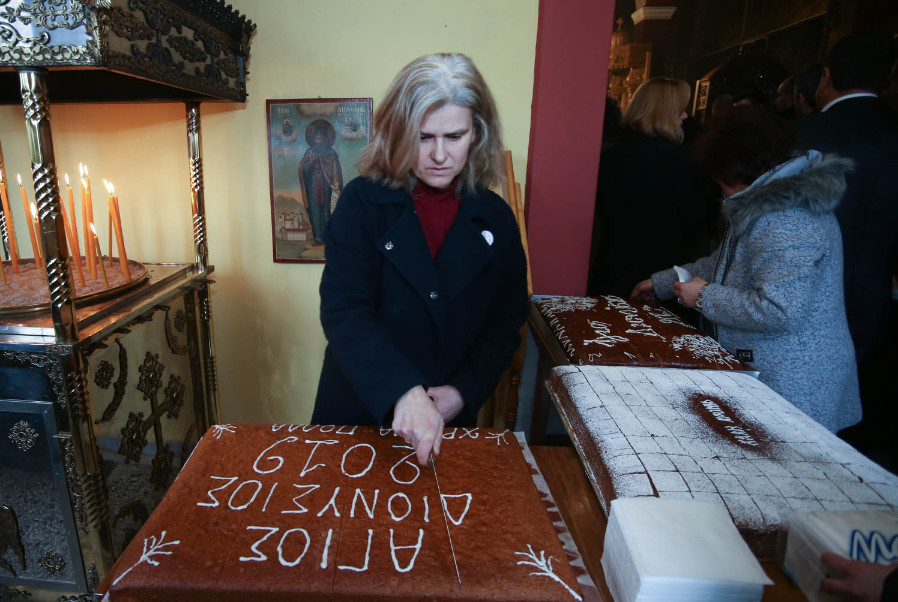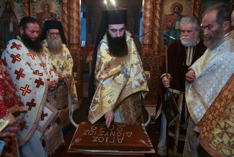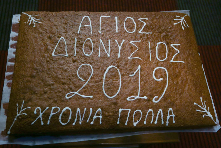Το εσπέρας της Τρίτης τελέστηκε ο πανηγυρικός Μέγας Εσπερινός με την Αρτοκλασία και διαβάστηκε η Ευχή κολλύβων του εορταζόμενου Αγίου. Το πρωί της Τετάρτης (23-1-2019) διαβάστηκε η Λιτή, ψάλθηκε πανηγυρικά ο Όρθρος και τελέστηκε πανηγυρικά η Θεία Λειτουργία, στο τέλος της οποίας ευλογήθηκε η πίτα και μοιράστηκε στο εκκλησίασμα. Το φλουρί το βρήκε η Θεοδώρα Κακούλη. Ο Ιερός Ναός, της πρόσφερε δώρο μία εικόνα του Αγίου Διονυσίου (ακριβές αντίγραφο της πρωτότυπης εικόνας του Αγίου, έργο διά χειρός του Βελβεντινού λαϊκού ζωγράφου Χαρισίου Τσιουκαρδάνη). Το εσπέρας της 23ης ψάλθηκε η Παράκληση στον Άγιο Διονύσιο και διαβάστηκε κτιτορικό τρισάγιο.