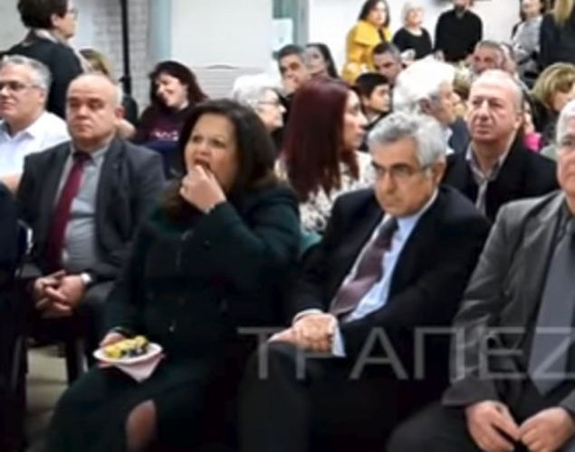 Η αντίδρασή της πάντως εξέπληξε τους πάντες. Η Χαρά Καφαντάρη ολοκλήρωσε την ομιλία της, κάθισε στην θέση της και συνέχισε να τρώει την πίτα, σαν να μην συμβαίνει τίποτα.