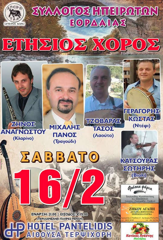 Το Διοικητικό συμβούλιο του Συλλόγου Ηπειρωτών Εορδαΐας, σας προσκαλεί στην κοπή της βασιλόπιτας, την Κυριακή 10 Φλεβάρη του 2019, ώρα 5:30 μ.μ. στην slendor
