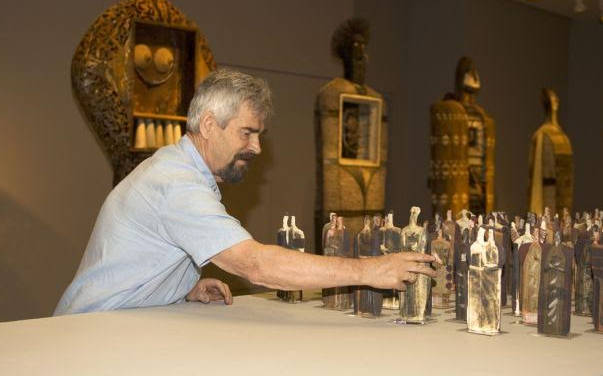 Εικαστικοί, γλύπτες και χαράκτες συμπράττουν με εικαστικές δημιουργίες με μάσκες-προσωπεία σε μια διάδραση με το έργο του Παπαγιάννη.