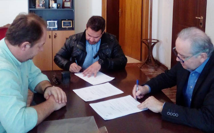 Υπεγράφη σήμερα Πέμπτη 21 Φεβρουαρίου 2019 στο Δημοτικό Κατάστημα , μεταξύ του εκπροσώπου του Δημάρχου Εορδαίας Σάββα Ζαμανίδη, Αντιδημάρχου Ιωάννη Αριστερίδη και του εκπροσώπου της εργοληπτικής επιχείρησης ΑΦΟΙ Α. ΧΑΤΖΗΓΕΩΡΓΙΑΔΗ Ο.Ε. Ευάγγελου Χατζηγεωργιάδη , η σύμβαση του έργου «ΑΝΑΚΑΙΝΙΣΗ – ΣΥΝΤΗΡΗΣΗ ΤΟΥ ΚΛΕΙΣΤΟΥ ΑΘΛΗΤΙΚΟΥ ΚΕΝΤΡΟΥ (ΕΑΚ) ΚΑΙ ΤΩΝ ΒΟΗΘΗΤΙΚΩΝ ΧΩΡΩΝ» .