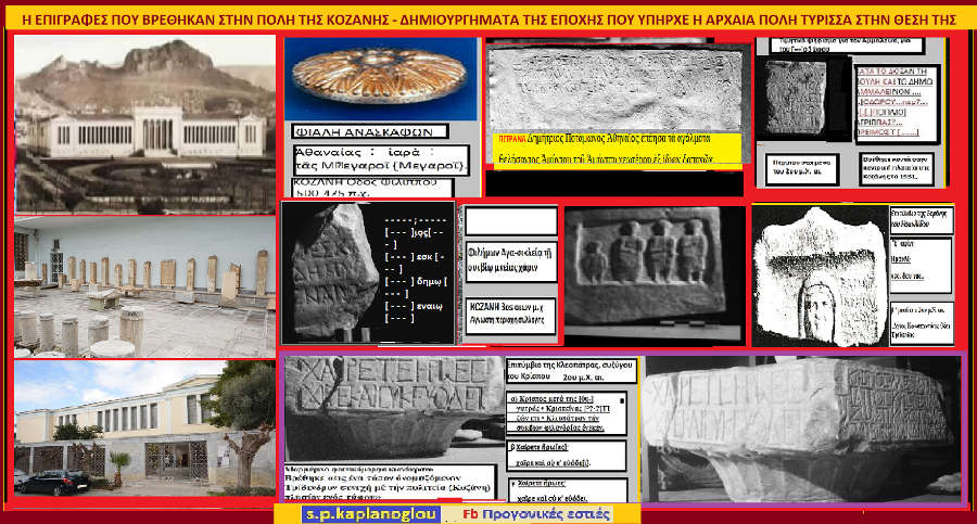 Έτσι αποφασίσαμε να μάθουμε για την πόλη καταφεύγοντας στα μοναδικά αυθεντικά κείμενα που διασώθηκαν γιατί τα έκρυψε η Κοζανίτικη γη ή αν θέλετε η γη της Τύρισσα, και δεν ήταν άλλα από τα μικρά κείμενα των επιγραφών σε επιτύμβιες η τιμητικές πλάκες ,σε επιστολές που χαράχθηκαν πάνω σε πέτρα η μέταλλο ,πηλό κ.α. υλικά και δεν ήταν δύσκολο να τα βρούμε μια και η αρχαιολογική υπηρεσία διαθέτει σε κάθε ενδιαφερόμενο μέσω της σελίδας του διαδικτύου με την ονομασία ΠΑΝΔΕΚΤΗΣ όλες τις παλιές επιγραφές , με φωτογραφίες των ευρημάτων,την χρονολόγηση τους ,το χώρο που βρέθηκαν και την χρονολογία της εύρεσης με τις απόψεις έγκριτων αρχαιολόγων για το περιεχόμενο των κειμένων.