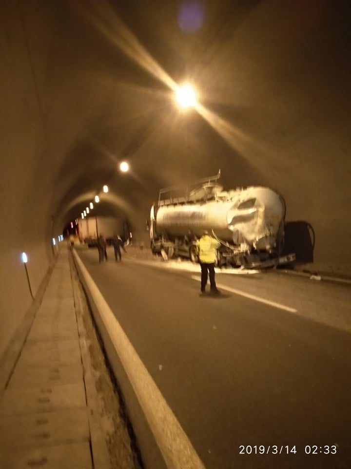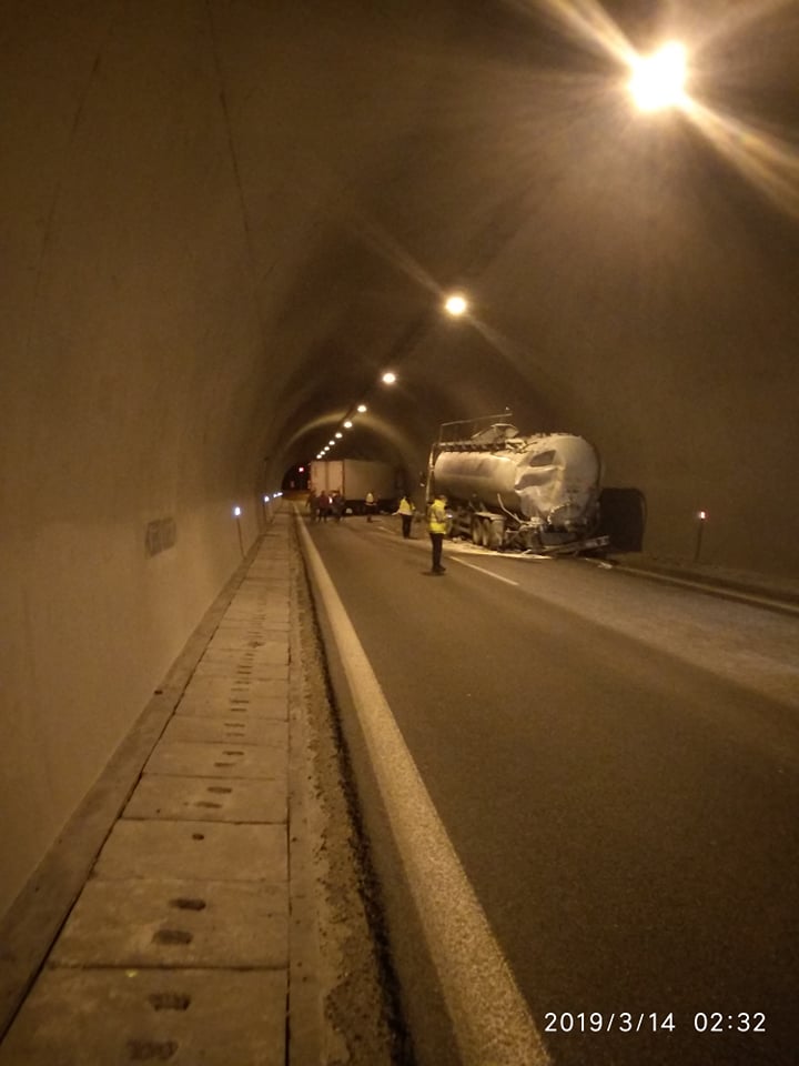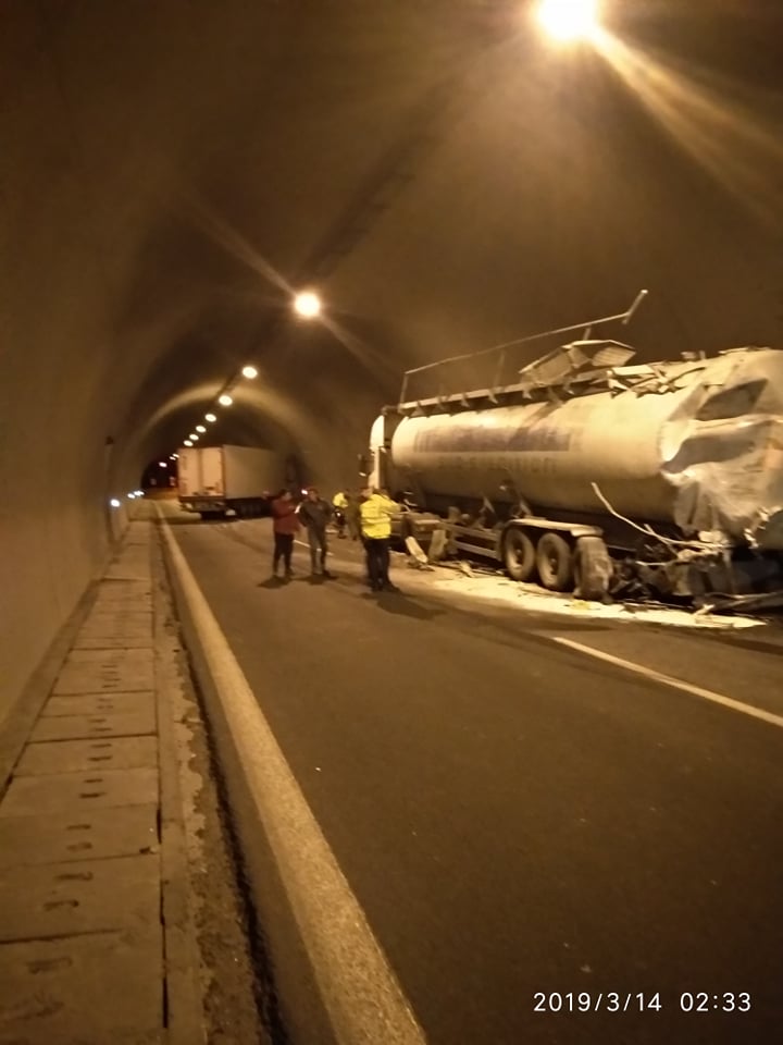 Δείτε τις φωτογραφίες του κ. Νίκου Πλεξίδα που βρέθηκε στο σημείο του ατυχήματος που σημειώθηκε τις πρώτες πρωινές ώρες της Πέμπτης 14 Μαρτίου 2019, όταν νταλίκα συγκρούστηκε σε σταματημένο βυτιοφόρο μέσα σε τούνελ της Εγνατίας Οδού στον δρόμο από Βέροια προς Κοζάνη.