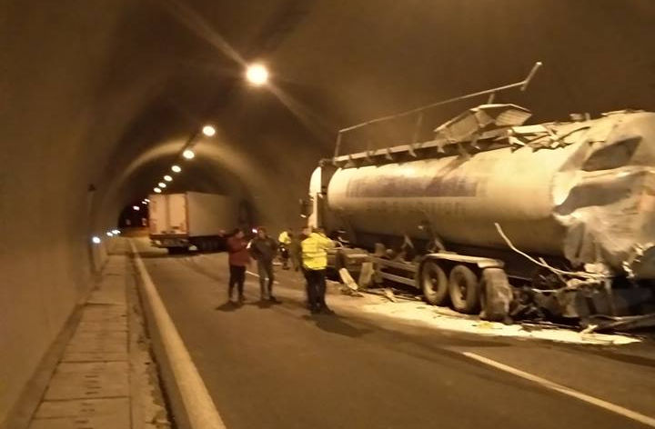 Το ρεπορτάζ αναφέρει πως ότι η μπετονιέρα ήταν σταματημένη μέσα στο τούνελ και ο οδηγός της νταλίκας τη χτύπησε με δύναμη από τη δεξιά μεριά όπως ερχόταν, με αποτέλεσμα να υποστούν μεγάλες υλικές ζημιές και να τραυματιστεί ελαφρά ένας εκ των δύο οδηγών.