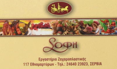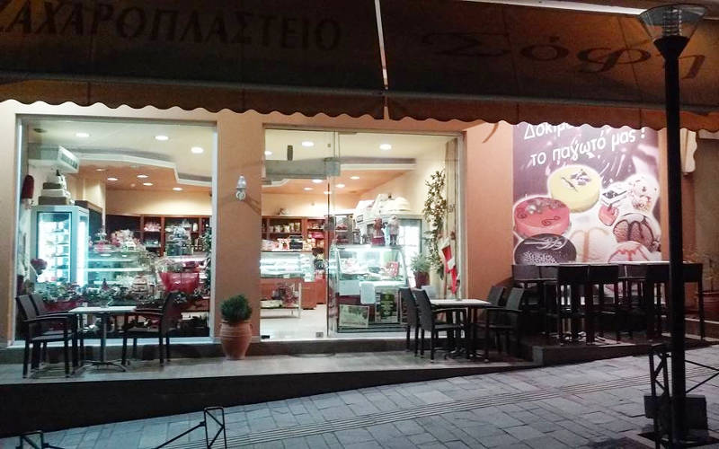 Απολαυστικά γλυκά, μοναδικές τούρτες για όλες τις περιστάσεις, παστάκια βαπτίσεων, κουλουράκια, βουτήματα, σιροπιαστά, παγωτά αλλά και μεγάλη ακόμα ποικιλία εκλεκτών προϊόντων θα βρείτε καθημερινά στο Ζαχαροπλαστείο «Σόφη».