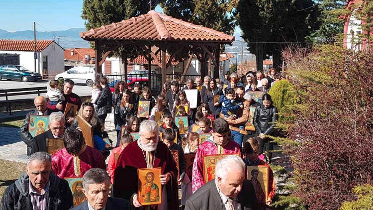 Με τη συμμετοχή πολλών παιδιών (μαθητών της Α/θμιας και Β/θμιας εκπαίδευσης και μικρότερων παιδιών που τα κρατούσαν οι νέοι γονείς τους στην αγκαλιά τους) έγινε η λιτάνευση των εικόνων, στο προαύλιο και γύρω από το Ναό, την Κυριακή της Ορθοδοξίας (17-3-2019) στο Βελβεντό, στον Ιερό Ναό του Αγίου Διονυσίου εν Ολύμπω.