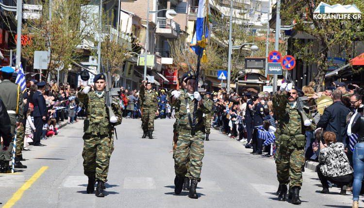 Με το εμβατήριο «Μακεδονία Ξακουστή» και τον κόσμο να καταχειροκροτεί έκανε την είσοδό της η στρατιωτική μπάντα κατά τη διάρκεια της καθιερωμένης παρέλασης της επετείου της 25ης Μαρτίου στην Κοζάνη.