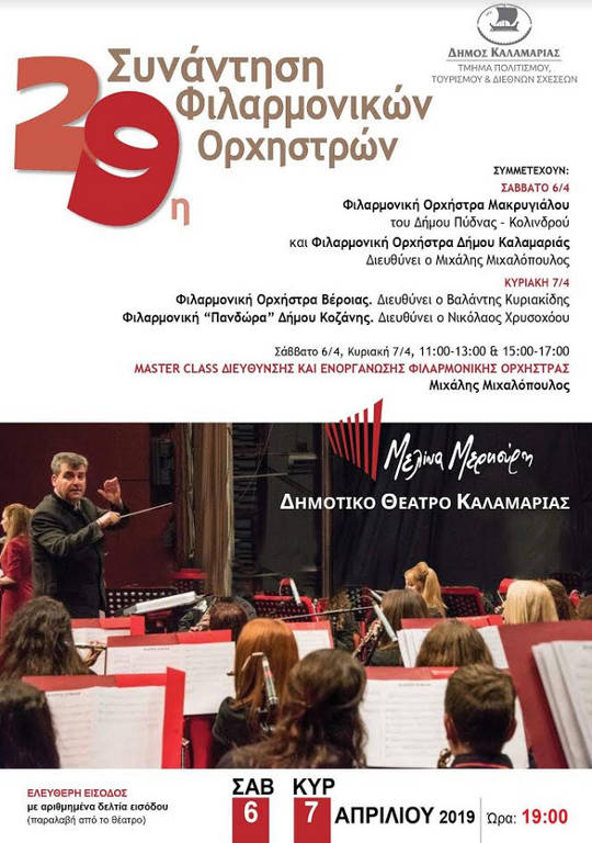 Στην 29η Συνάντηση Φιλαρμονικών που διοργανώνει το Τμήμα Πολιτισμού Τουρισμού και Διεθνών Σχέσεων του Δήμου Καλαμαριάς θα συμμετέχει και η Φιλαρμονική του Δήμου Κοζάνης «Πανδώρα» την Κυριακή 7 Απριλίου στις 19:00 στο Δημοτικό Θέατρο Καλαμαριάς «Μελίνα Μερκούρη».