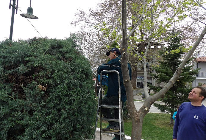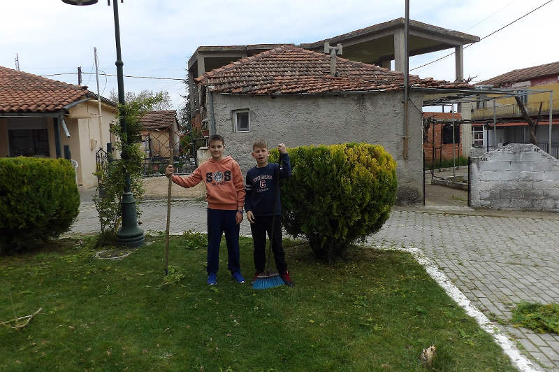 Αφού προμηθεύτηκαν τα απαραίτητα εργαλεία κηπουρικής που απαιτούσε η προσπάθειά τους και η καλή τους διάθεση… “πιάσανε δουλειά!” Καθάρισαν τα ξερά χόρτα, κλάδεψαν, φύτεψαν λουλούδια, κούρεψαν το γκαζόν και χάρηκαν την επαφή τους με τη φύση.